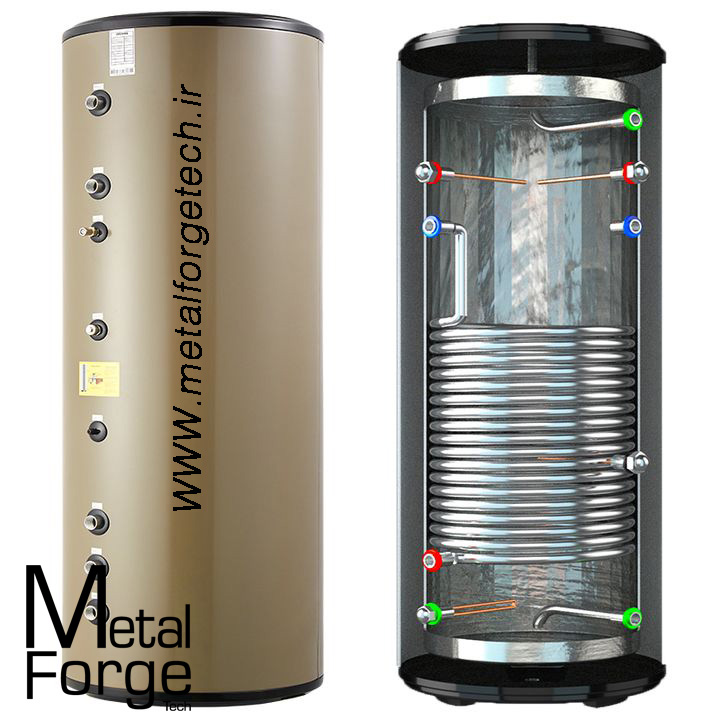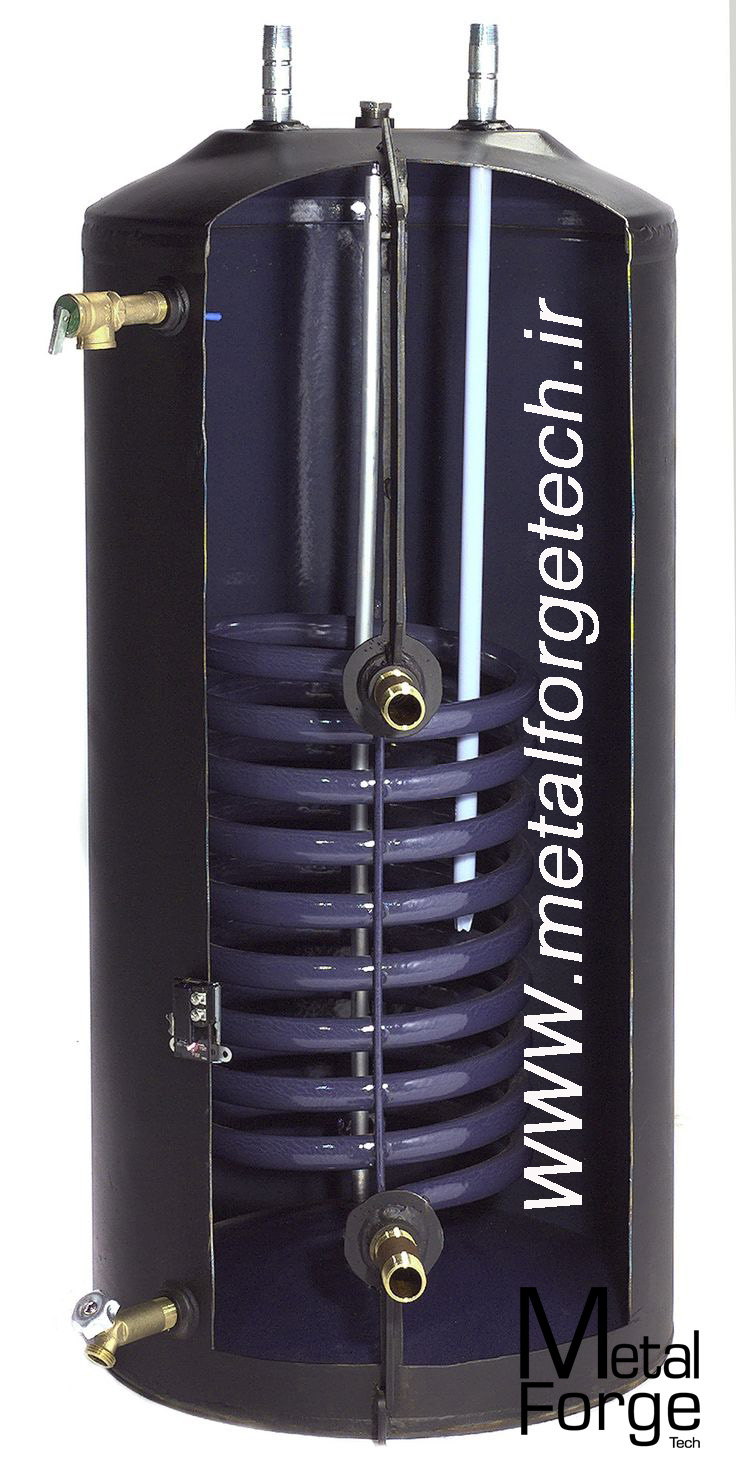 مخزن مبدلدار با کویل مسی مارپیچ، برای گرمایش غیرمستقیم آب یا مایعات صنعتی طراحی شده است. در این سیستم، سیال گرم (مثل بخار یا آب داغ) از داخل کویل مارپیچی عبور کرده و حرارت خود را به مایع داخل مخزن منتقل میکند. طراحی کویل از جنس مس یا استیل باعث افزایش راندمان انتقال حرارت و کاهش زمان گرمایش میشود.